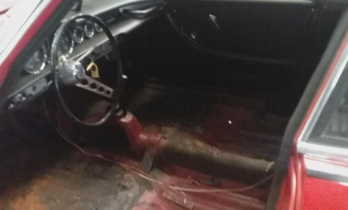 We went down to the shop to check up on the car, and they are getting work done. Most of the interior is taken out, and they are working on fixing the rust. They took the fuel tank out, and it was rusted to pieces. Other than that, they said it was looking better than the expected it to. Here’s what it looked like under the super nice carpet… Not safe and not going to get this car through the next 50 years.